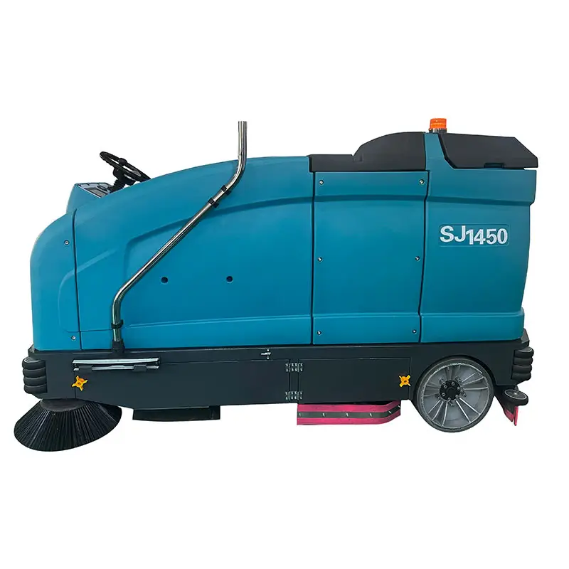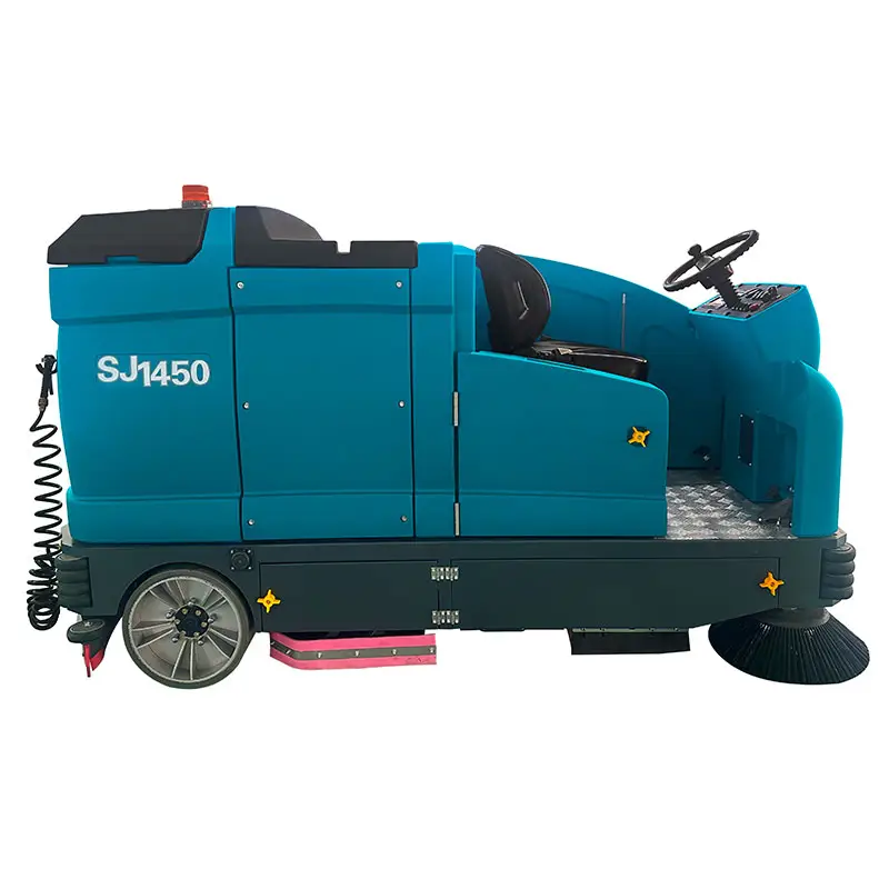 Il SJ1450 Ride-On Lavasciuga pavimenti La lavasciuga pavimenti uomo a bordo SJ1450 è una macchina per la pulizia di livello professionale che combina potenti capacità di pulizia e spazzamento dei pavimenti. Con un'ampiezza di pulizia di 1100 mm e un'impressionante efficienza di pulizia di 17.000 m²/h, è la soluzione ideale per grandi spazi commerciali e ambienti industriali. Che si tratti di pulire centri di trasporto come aeroporti e stazioni, impianti di produzione, parchi industriali, centri espositivi o altri luoghi di grandi dimensioni, questa macchina è in grado di gestire tutto con facilità.